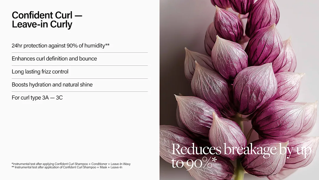 Thekso, formëso dhe zbut kaçurrelat e tua natyrale me Confident Curl Leave-in Curly, një krem të lehtë pa shpëlarje që ofron hidratim të thellë pa e rënduar flokun.